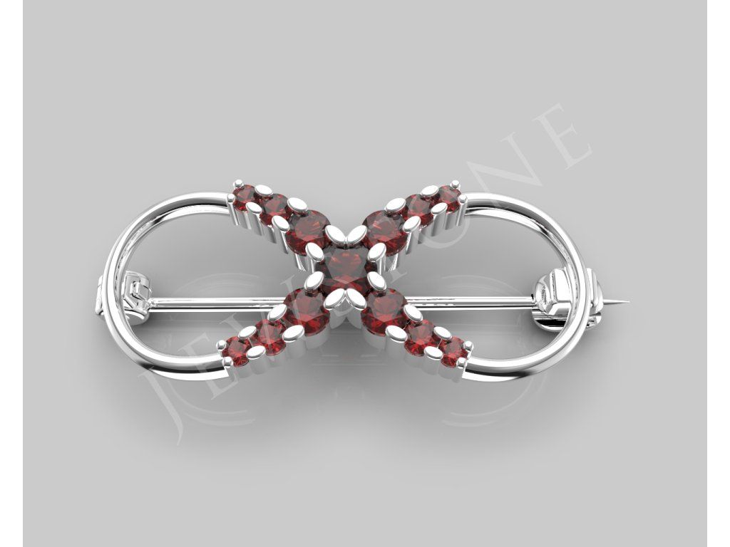 Brož ve tvaru nekonečna je osazena přírodními granáty a určena pro každodenní nošení.