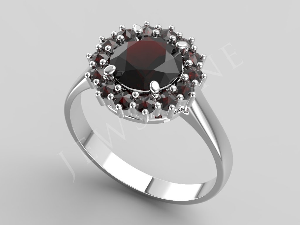 Stříbrný prsten - almandin, granát 3 g, ag 925/1000+Rh