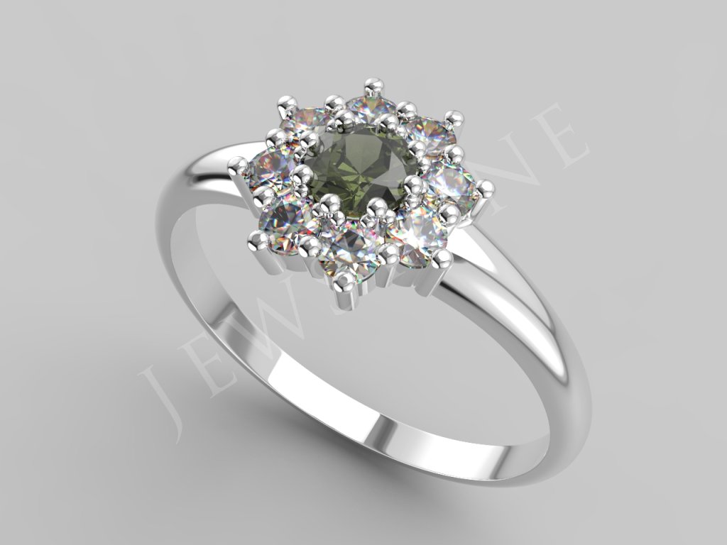 Stříbrný prsten - vltavín, kubický zirkon, Ag 925/1000+Rh